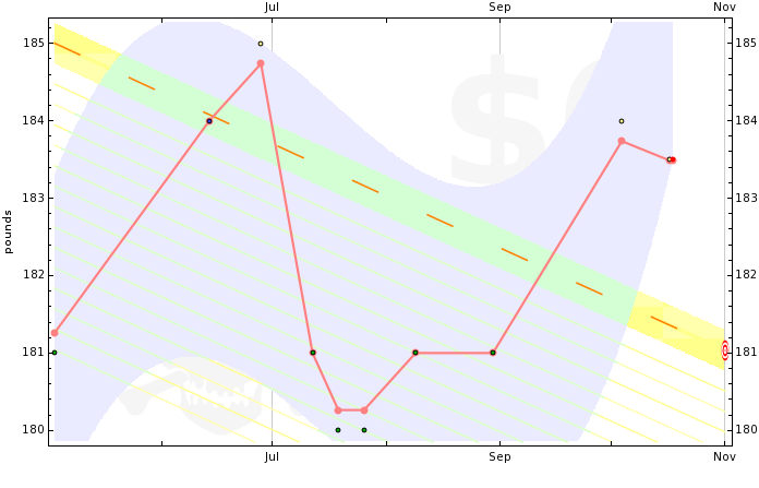 Think of this as a very thick line charting your progress or an aura around your actual data. It's like the moving average line but fatter and smoother, and it extends past your actual data as a kind of projection into the future, in case that's useful. (Gory details on the blog.)