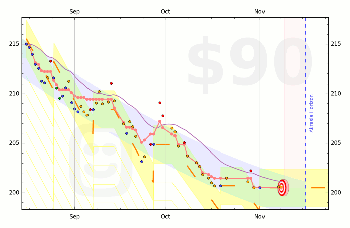 This thicker yellow line denotes the user-specified maximum daily fluctuation, shown as an offset from the bright red line. Details in the FAQ.