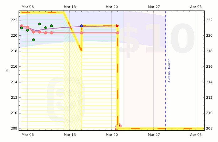 This line is a week away from now. You can only make changes in the steepness of your red line beyond the akrasia horizon.